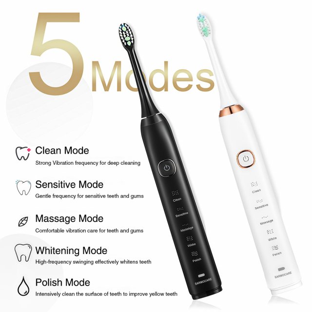 Designed with precision and comfort in mind, this toothbrush features five targeted modes: Clean, Sensitive, Massage, Whitening, and Polish. Each setting is built to meet your unique dental needs, offering a personalized brushing experience every time. From deep cleaning between teeth to gently soothing sensitive gums, you’re always in control of your oral health.