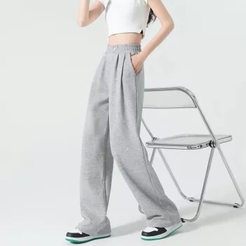 High Waist Wide Leg Gray Sweatpants