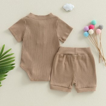 Baby Summer Ribbed 2-Piece Outfit – Unisex Romper and Bow Shorts Set