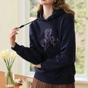 Women’s Yellow Green Embroidered Zip-Up Hooded Sweatshirt – Spring/Fall Casual Jacket