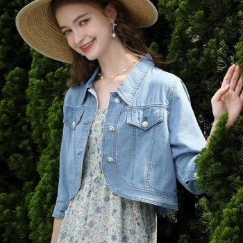 Summer Denim Puff Sleeve Jacket – Turn-Down Collar, Wide Fit, Casual Chic