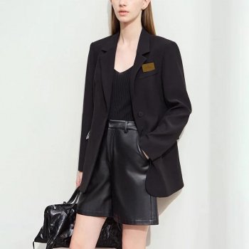 Minimalist Black V-Neck Blazer for Women – Spring Office Loose Fit