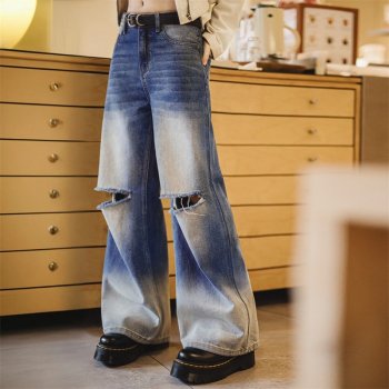Casual Wide Leg Ripped Gradient Jeans for Women – Street Style Denim Pants