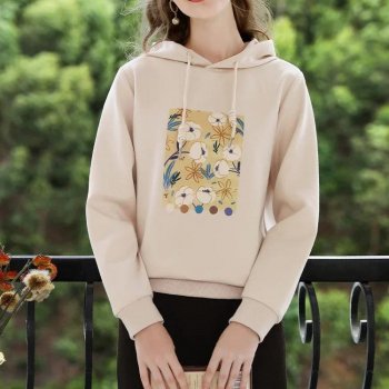 Floral Print Casual Hoodie for Women – Autumn Loose Fit Pullover Sweatshirt