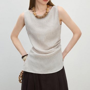 Women’s Sleeveless Striped Linen Casual Top – Slim Fit Summer Pullover