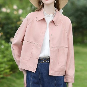 Elegant Pink Suede Lapel Short Jacket for Women – Trendy Spring Streetwear