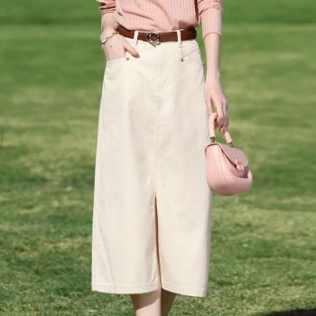 High Waist A-Line Button Denim Skirt for Women – Mid-Calf Summer Style