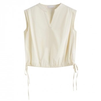 V-Neck Sleeveless Blouse with Drawstring Tie – Summer Loose Fit Top
