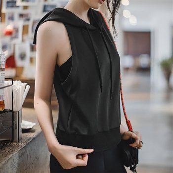 Casual Black Sleeveless Hoodie Vest for Women