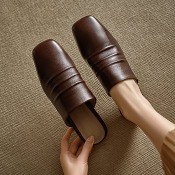 Genuine Leather Women’s Mules with Pleated Design & Low Square Heel