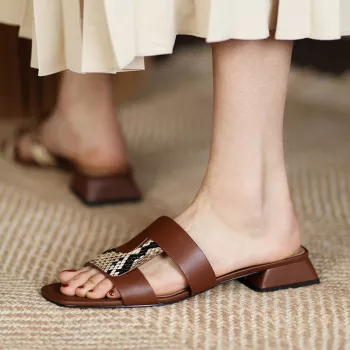 Summer Leather Mules for Women – Covered Toe Chunky Heel Slingback Sandals