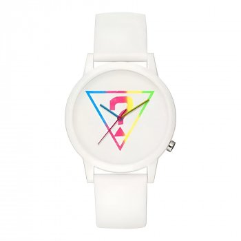 Guess Lilac Silicone Strap Quartz Watch with Silver Dial – 44mm