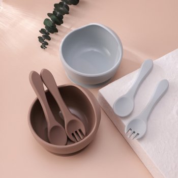 6PCS Silicone Baby Feeding Set with Suction Bowl, Bibs, Cups & Utensils