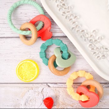 Soft Silicone & Wooden Baby Teether Ring – Hand Training & Teething Relief