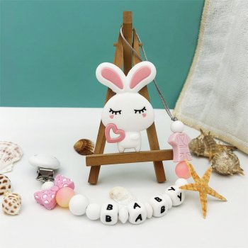 Baby Pacifier Clip with Silicone Beads & Bunny Teether