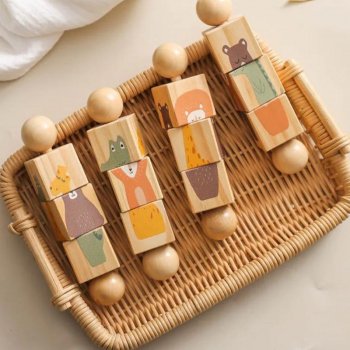 Wooden Baby Teether Rattle Toy