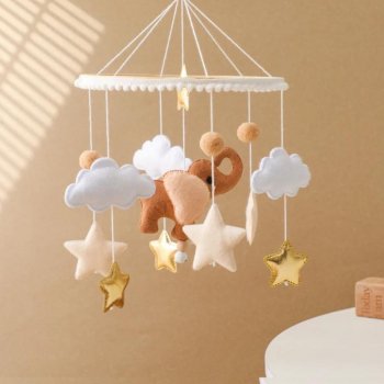 Wooden Baby Crib Mobile with Musical Elephant Rattles – 0-12 Months