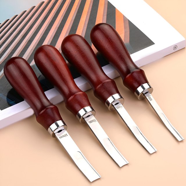 Crafted with a solid wood handle and durable metal blade, this skiving beveler offers excellent grip and precision control. The ergonomic design allows for comfortable use over extended periods, making it ideal for detail-intensive tasks. Measuring approximately 1.18 x 6.69 inches, it’s compact yet effective — a must-have addition to any leatherworker’s toolkit.