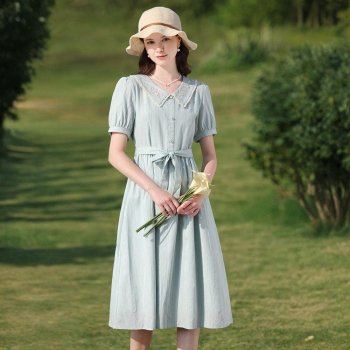 Elegant Summer A-Line Midi Dress with Lace and Peter Pan Collar