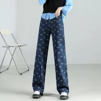 Women’s High-Waist Moon Print Baggy Jeans: Casual Vintage-Inspired Denim
