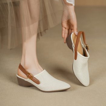 Pointed Toe Split Leather Slingback Sandals for Women with Chunky Heel