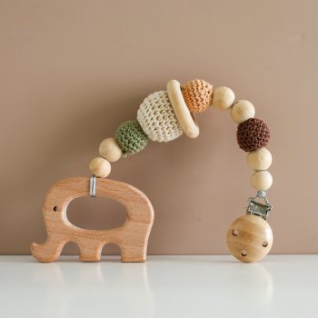 Wooden Baby Pacifier Clip with Crochet Beads – Teething Soother Holder