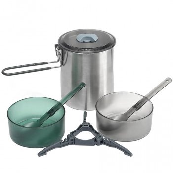 1.6L Stainless Steel Camping Cookware Set with Sporks & Bowls